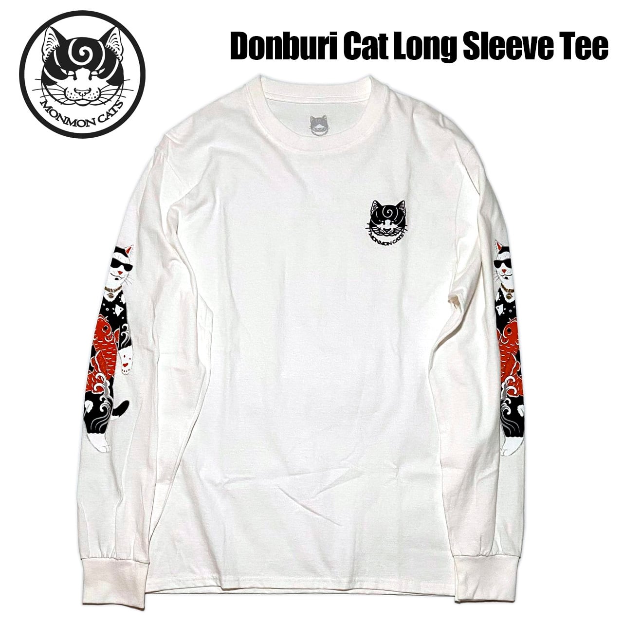 MONMON CATS『Donburi Cat』Long Sleeve Tee (White)