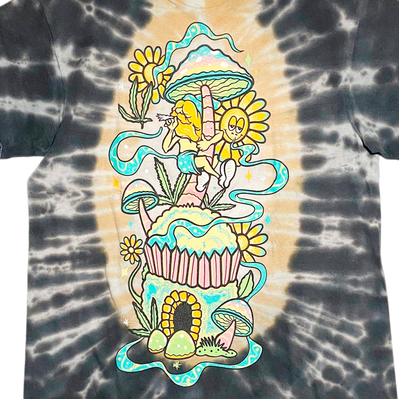 ヒッピー感あふれるアートとタイダイ染めの組み合わせが